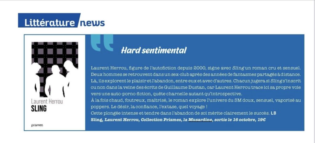 Sortie de Sling, de Laurent Herrou, octobre 2025
